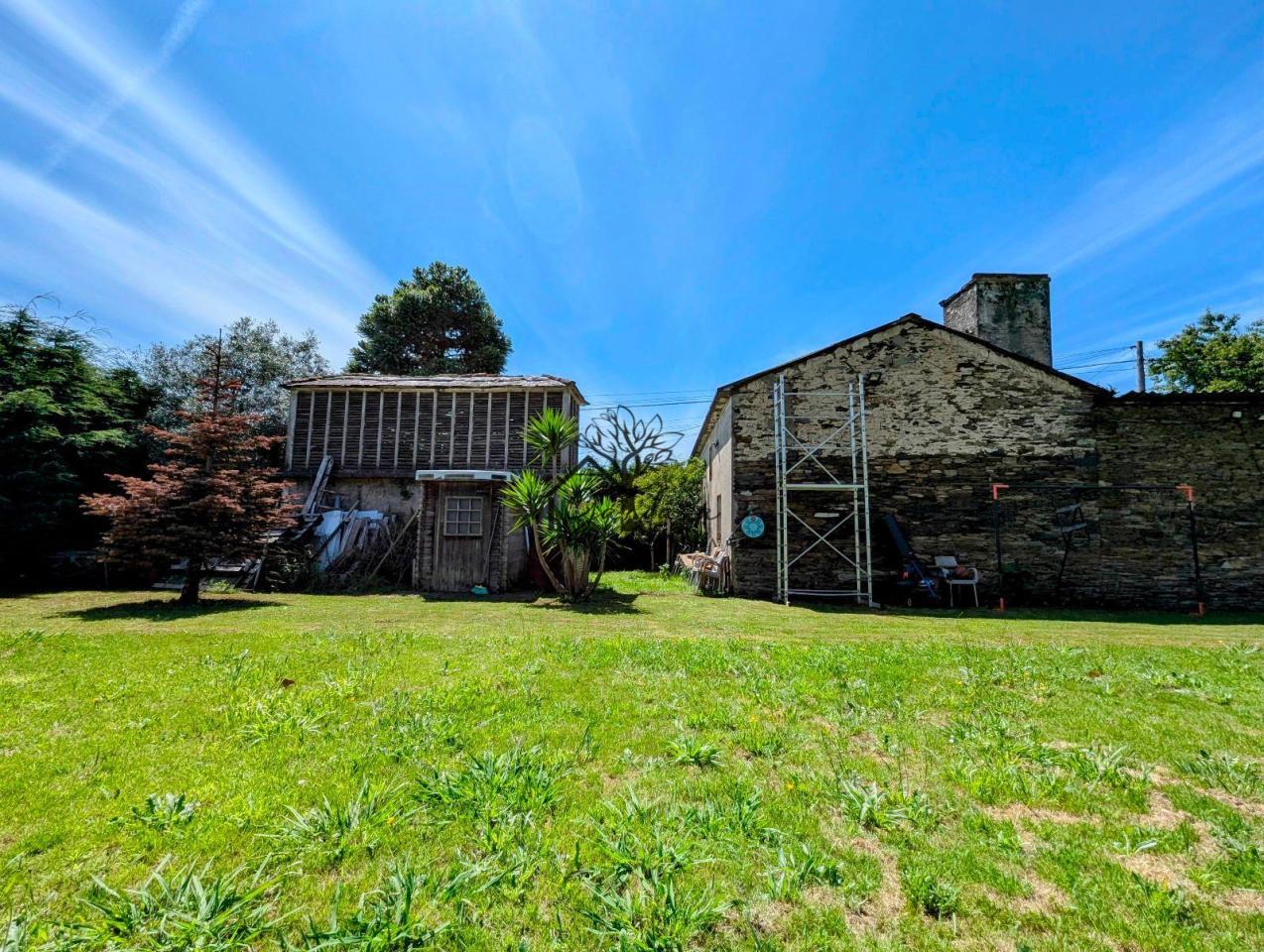La finca es llana y se distribuye en dos alturas, conectadas por unas escaleras de piedra o una suave rampa. Cada nivel tiene su propio encanto: en la primera altura donde se encuentra la casa, un bien conservado hórreo y un pozo de agua añaden carácter y funcionalidad, además de una barbacoa y un cenador que esperan ser el centro de celebraciones al aire libre, una caseta con baño exterior aporta un servicio extra; en la segunda altura, una piscina de superficie y árboles que proporcionan sombra crean un pequeño paraíso de descanso. Además, el sol ilumina la finca desde el amanecer hasta el atardecer, asegurando luz natural durante todo el día.